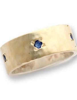 Bague argent or 9 ct, bague pour femme, bague saphirs, bagues argent sterling & or