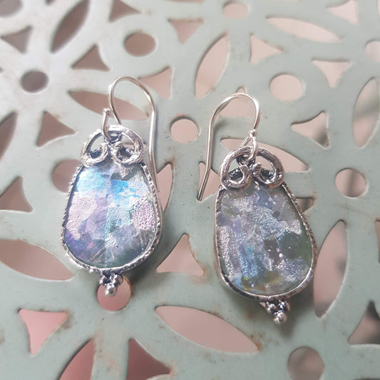 Boucles d’oreilles en verre romain argent sterling bijoux en verre romain israélien