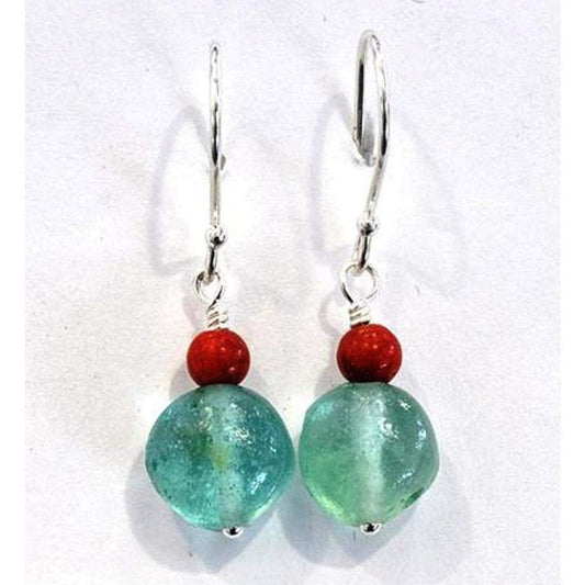 Boucles d’oreilles en verre romain, boucles d’oreilles en argent sterling
