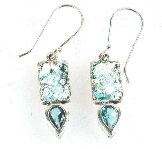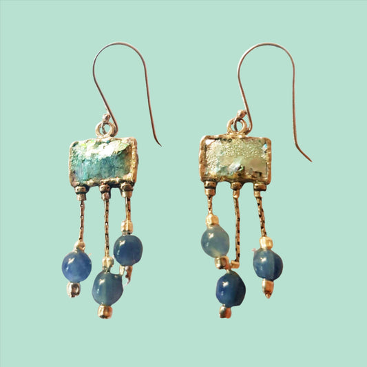 Boucles d’oreilles en verre romain pendantes boucles d’oreilles en argent bijoux en verre romain israélien avec lapis