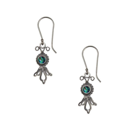 Boucles d'oreilles en argent Boucles d'oreilles israéliennes en filigrane délicates en argent avec pierres précieuses.
