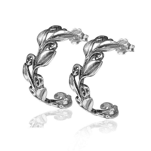 Boucles d'oreilles créoles en argent petites, Boucles d'oreilles en argent sterling 925 Motif nature