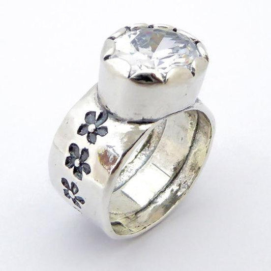 bague en argent / bagues en argent sterling serties de zircons cz / designer israélien / bague boho