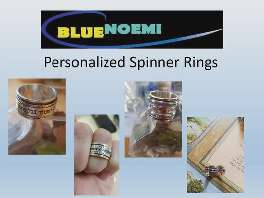 Bijoux israéliens Bluenoemi | Bague d'inspiration de bague tournante de bijoux personnalisés avec breloques bague en argent sterling gravée en hébreu