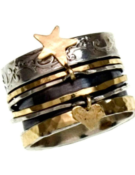 Bague Spinner pour Homme Bague pour Femme argent or 9ct Bague Deux Métaux
