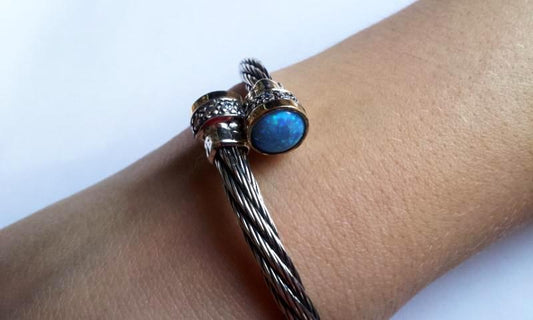 Bracelet manchette flexible en argent sterling et or serti d’opales, bracelets pour femme