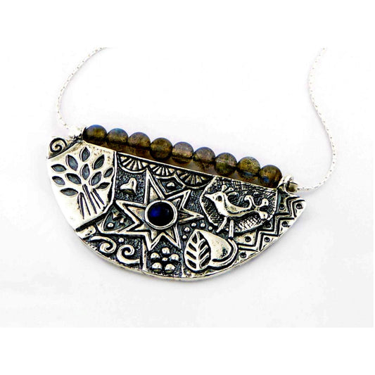 Collier romantique en argent sterling pour femme. Pendentif médaillon Hamsa.