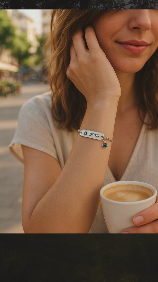 Sterling Silver Bat Mitzvah / Bar Mitzvah Bracelet – Star of David & Evil Eye – Personalized Name Engraving