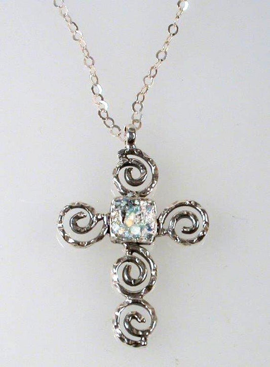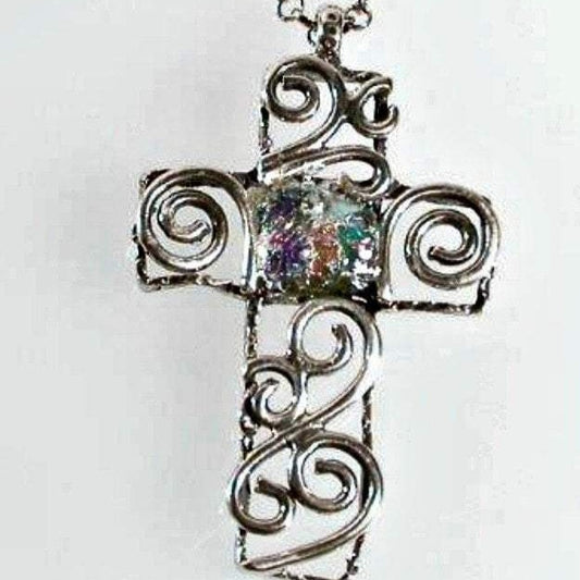 Croix en argent sterling avec verre romain, croix d'argent pour femme avec verre romain