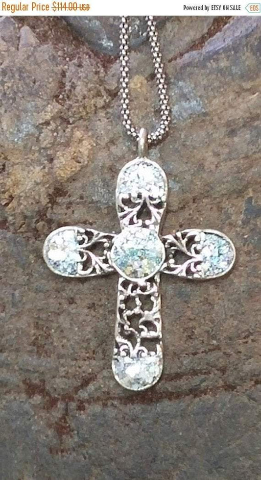 Croix en argent sterling avec verre romain, croix d’argent pour femme, croix de terre sainte