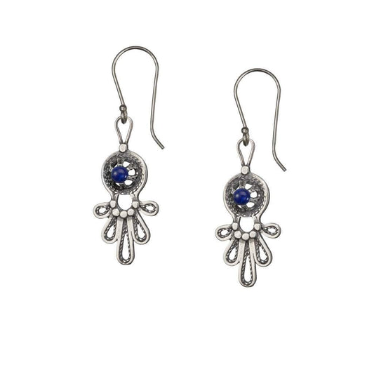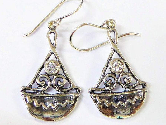 Boucles d'oreilles en argent massif pour Femme. Boucles d'oreilles israéliennes délicates en filigrane serties de pierres.