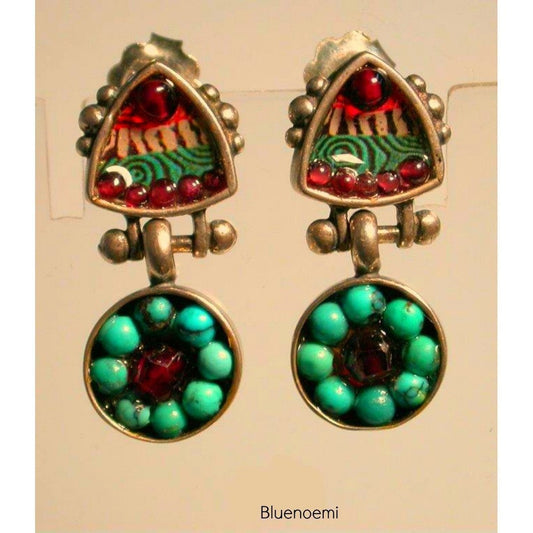 Boucles d’oreilles en argent sterling, boucles d’oreilles pendantes grenats turquoise bijoux israéliens
