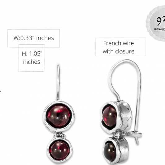 Boucles d’oreilles en argent sterling, boucles d’oreilles Garnet, boucles d’oreilles drop, boucles d’oreilles Dangle, bijoux de créateurs israéliens