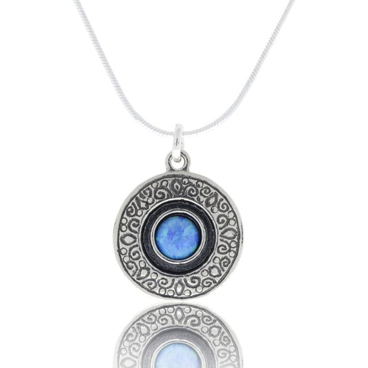 Collier pendentif en argent sterling serti d'opale bleue