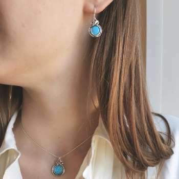 Sterling silver pomegranate necklace set Blue Opal or Turquoise