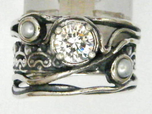 Bague perle en argent sterling. Bague en zircone CZ. Bagues israéliennes pour femmes. Bague perles de bohème.