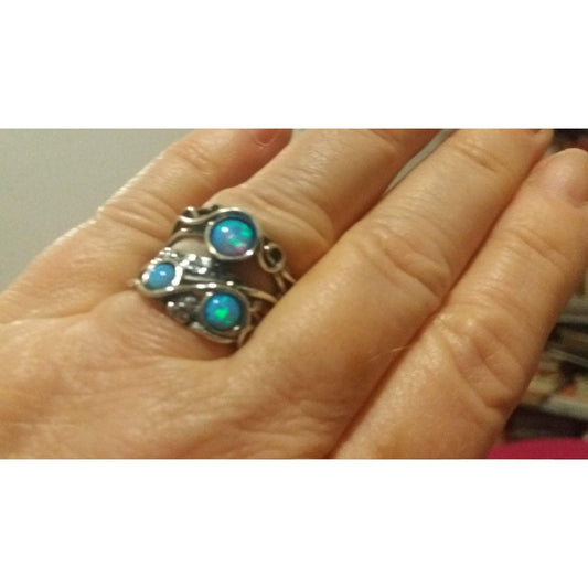 Bague en argent sterling sertie de pierres d'opale. Bague bohème de créateur israélien