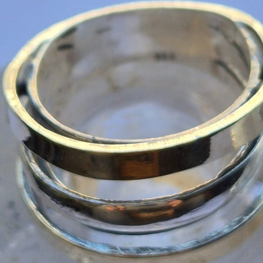Unisex Designer Spinner ring Silver & 9KT. Yellow Gold Unique rings